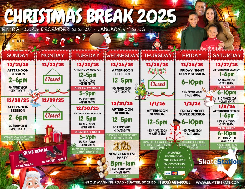 - Music Format: The best skating hits of yesterday & Family Fun Music! Requests taken!